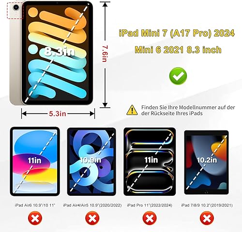 Designed for iPad Mini 7th/6th : Exclusively Designed for the New 8.3inch iPad Mini 6th gen 2021 Only(Model: A2567 / A2568 / A2569). iPad mini (7/6th Gen):A2995, A2567, A2568.NOT fit for any other models.Please check the model # on the back before purchasing.