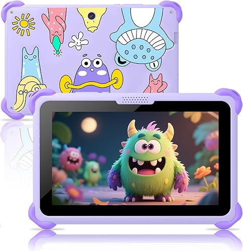 Kids Tablet 7 inch Tablets for Kids 3-12, 32GB Android Toddler Tablet with Solid Case, YouTube, Netflix, GMS, Bluetooth, WiFi, Education Learning Apps Installed, Parent Control(Purple)(Pink)