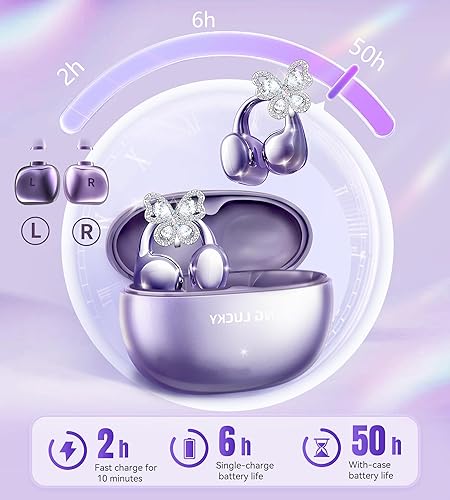 "Versatile Style for Every Occasion – Open Ear Clip On Earbuds: The sleek Purple finish with metallic butterfly accents pairs perfectly with open ear clip on earbuds’ modern design. Packaged in an elegant gift box, they’re ideal for birthdays, graduations, or as a fashion-forward statement for any outfit."