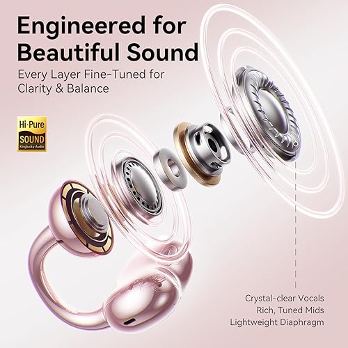 Clear & Balanced Sound — Tuned for Real Listening. Most open ear headphones focus on bass — we tuned ours for what you actually listen to. Whether it's podcasts, phone calls, or playlists, enjoy clean vocals and soft depth without overwhelming your ears.