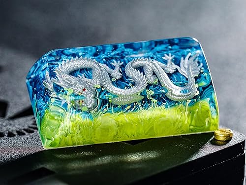 Kohaku Koi Artisan Keycap Blue and Pink Ocean Coral R1 SA Profile Custom Keycaps 1U ESC Handmade Gaming Resin Key Cap Cherry MX Switch Compatible Mechanical Keyboard Koi Lover Gift(Dragon-Backspace)