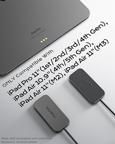 Compatibility: This magnetic wireless charger is exclusively compatible with iPad Air 13in M3 (2025), iPad Air 13in M2 (2024), and iPad Pro 12.9in (3rd/4th/5th/6th Gen). Notes: 1) Not compatible with other iPad models or Android tablets. 2) Please use with a 35W or higher PD adapter. An adapter below 35W may result in extremely slow charging or no charging. 3) Please keep the iPad powered on when connecting and remove case when using