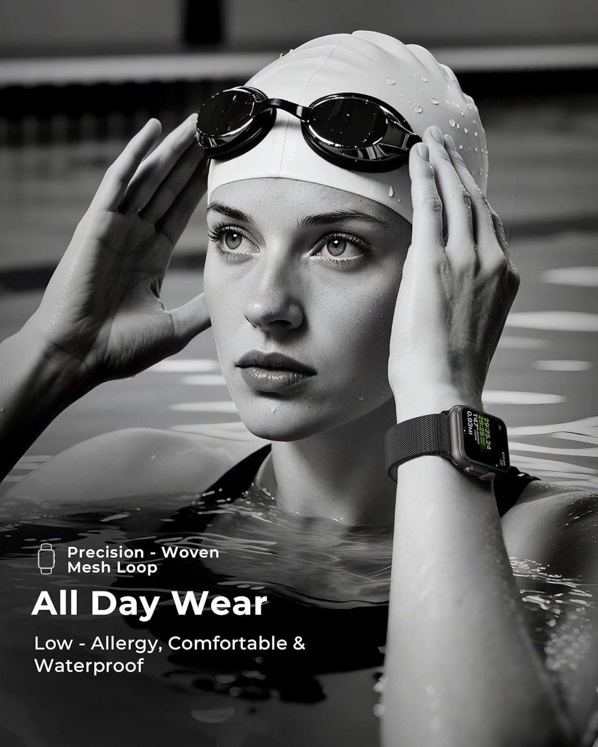 [Wide Compatibility] Compatible with Apple Watch Ultra3/Ultra 2/Ultra 49mm, and Series 11/10/9/8/7/SE/6/5/4/3 (42mm–49mm). This breathable titanium apple watch band with mesh design offers comfort and style for all-day wear (Wrist width: 5.90-10.03in).