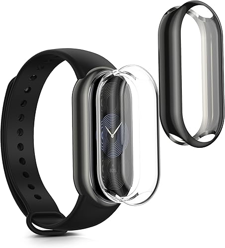 kwmobile Case Compatible with Xiaomi Mi Band 9 / Smart Band 9 Case - 2X TPU Silicone Fitness Tracker Cover - Black/Silver(black / silver)
