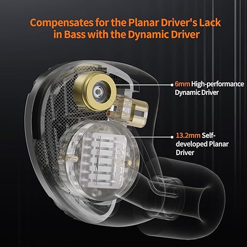 High Quality Sound : The in-ear headphones boasts 13.2mm Planar+1DD Hybrid Drivers acoustic design, combining a balanced armature driver can vastly improve the definition of bass, middle, and treble frequencies. The result is exceptional audio quality that keeps streamers fully immersed with their audience for hours on end