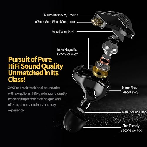 Pro-grade Sound Quality: KZ ZVX Pro is equipped with a 10mm dual cavity super linear dynamic driver. The flexible lows and smooth mids plus the bright highs are perfectly combined by scientific adjustments, with a balanced, subdued frequency response, this's what you are seeking immersive sound experience.