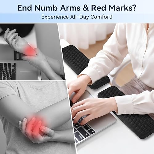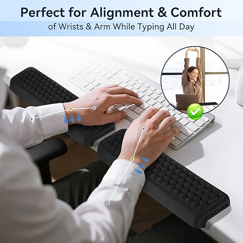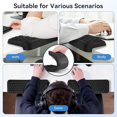 【Adjustable 2-Piece Design】: The versatile 2-piece desk wrist rest allows you to customize the spacing between the pads based on your personal needs, helping you find the perfect ergonomic comfort zone for extended use. Features a rubberized non-slip base that keeps the desk wrist rest firmly anchored to the desk, whether you're working or gaming. Ideal for office desks, home setups, study areas, or gaming stations, it's an essential upgrade for any workspace.