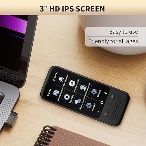 【Portable Size】This portable translator is compact and lightweight, and can be easily carried in pockets and backpacks. The 3-inch high-definition touch screen allows you to easily read the translated text; the dual operation mode of touch buttons and physical buttons makes it easy for people of any age to use. It weighs only 100 grams.