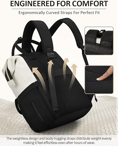 Spacious & Organized for Work & Daily Use - Stay organized with multiple internal pockets, including a padded laptop sleeve (fits up to 15.6”), a zippered mesh compartment for tech accessories, and a front easy access pocket for quick-grab items. Another front zipper pocket is perfect for storing chargers, keys, or makeup. Whether you’re commuting to the office or heading to school, this backpack offers ample storage without bulk.
