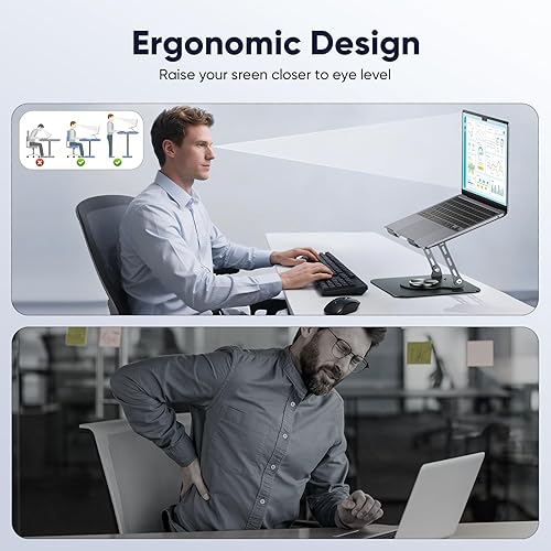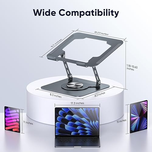 Adjustable Laptop Stand, 360° Rotating Foldable Computer Stand for 8 to 17.3 inches Laptop & Tablet, Carbon Steel, 45LB Capacity, Anti-Slip, Ergonomic Design (Starry Gray)