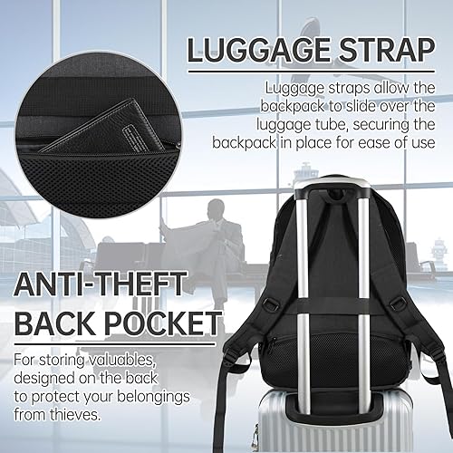 FUNCTIONAL & SAFE: A luggage strap allows backpack fit on luggage/suitcase, slide over the luggage upright handle tube for easier carrying. With a hidden anti theft pocket on the back protect your valuable items from thieves. Well made for international airplane travel and day trip as a travel gift for men