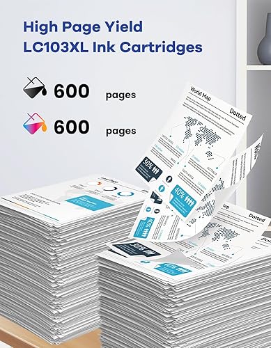 Exceptional Page Yield: 600 Pages per LC103XL Black Ink Cartridges, 600 Pages per LC103XL Color Ink Cartridges, at 5% coverage at A4 paper