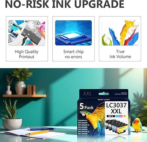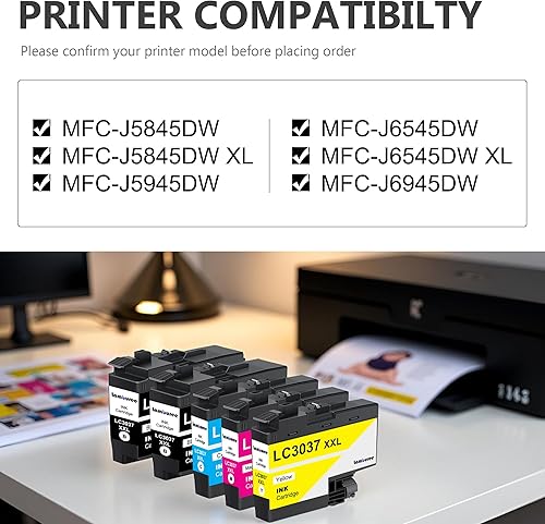 Includes: 5 Pack for LC3037XXL ink cartridges(2 x Black, 1 x Cyan, 1 x Magenta, 1 x Yellow) for printers to perfect balance of efficiency & cost control