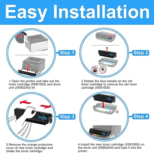 Reliable Quality: LCL 55B1000 cartridge uses high quality toner, toner particle size distribution, good mobility, high transfer rate, resulting in a clear image and high gloss print effect; Printing efficiency is high, waste powder rate is low, so as to ensure sufficient page yield.