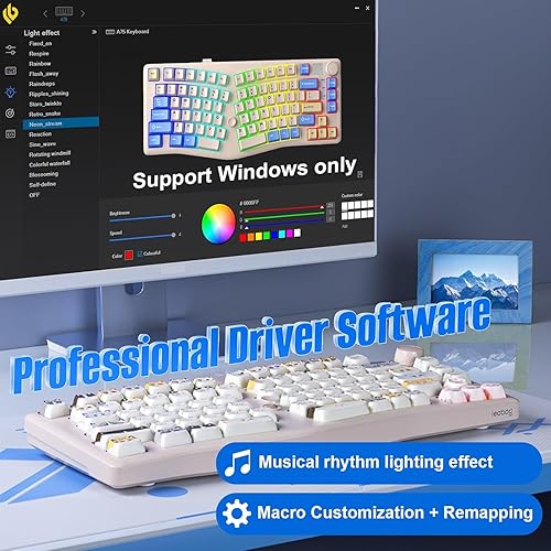 3-Mode Connection: Our computer keyboard supports Bluetooth 5.0, 2.4GHz wireless and Type-C wired connectivity, allowing you to seamlessly switch connections among up to 5 devices without worrying about losing any rhythm in the game. With a powerful 4000mAh battery that ensures continued efficient operation in all three connection modes, you can always trust the LEOBOG