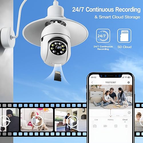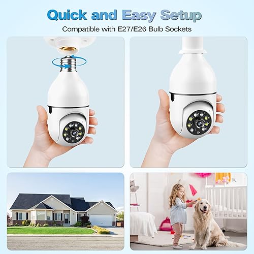 DUAL-BAND WiFi AND WIRELESS TECHNOLOGY: This lightbulb security camera combines 5G and 2.4G WiFi for stronger signal and wider coverage. In addition, the bulb camera comes with an adapter that can be easily installed on any E27/E26 outlet (110V-240V) or power outlet to connect the light bulb security camera to your router. You can then set up the light bulb security camera outdoor in minutes by simply opening the app.Simple, uncomplicated installation!