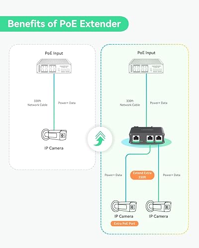 UP TO 330ft POE EXTENSION - Extend PoE + Data signal by extra 330ft over regular Cat5E or Cat6 network cable.