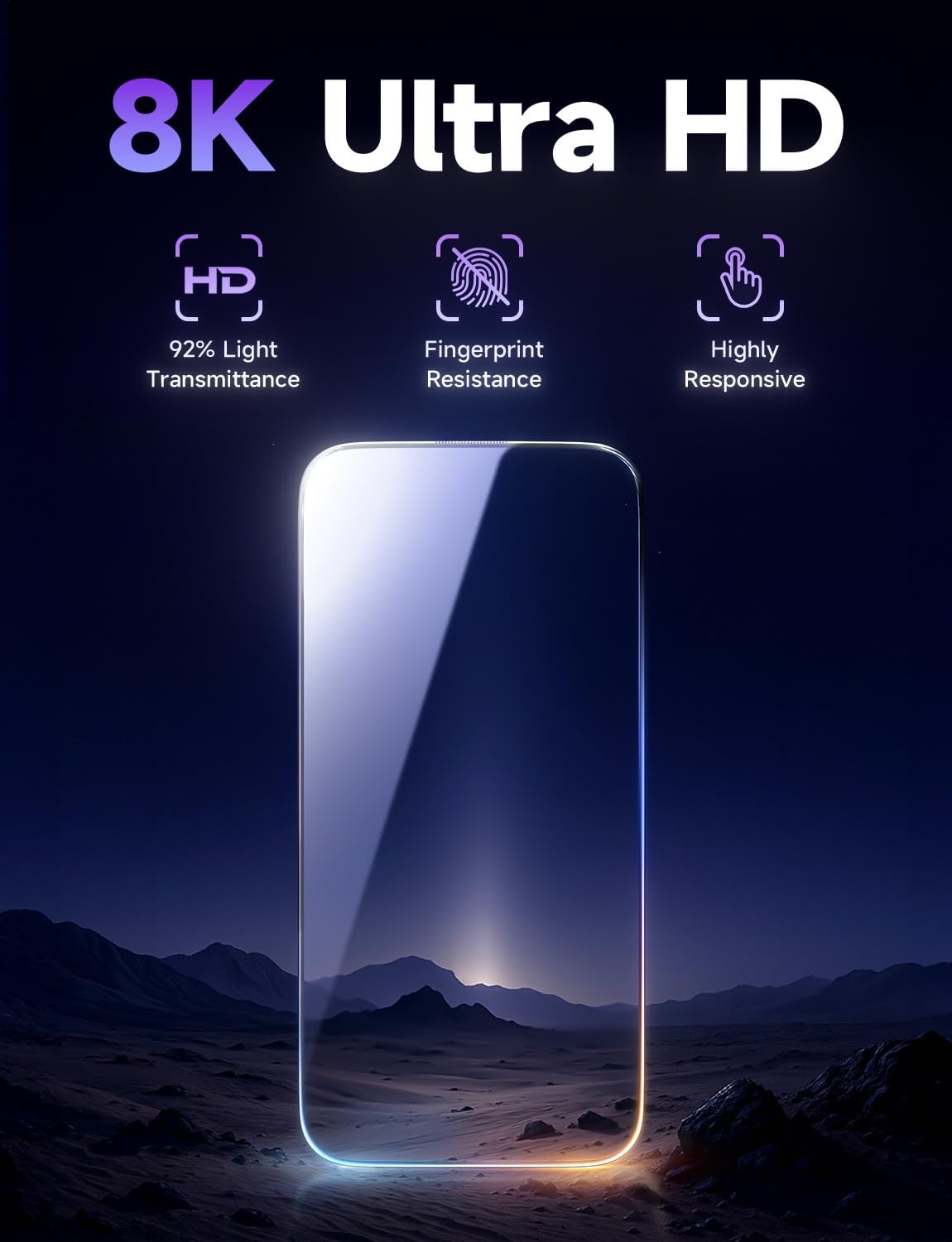 ANTI-FINGERPRINT AND 8K HD: oleophobic coating for fingerprint resistant, ultra clear glass for HD viewing and Face-ID compatibility