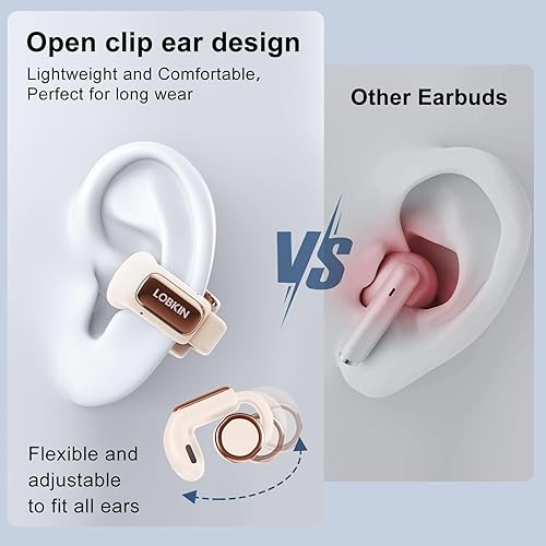 Clip On Design: Our clip on earbuds wireless bluetooth feature an open-ear design that keeps you aware of your surroundings while enjoying music, providing a secure and comfortable listening experience; These open ear clip on earbuds are lightweight and ergonomically designed, made of skin-friendly, highly flexible silicone material and avoid direct contact with the ear canal; The adjustable ear open ear earbuds clip on fit snugly and without pressure, ensuring comfort even during extended wear