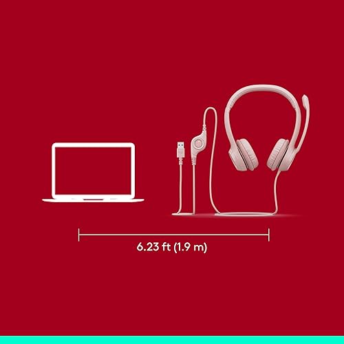 Logitech H391 Wired Headset for PC/Laptop, Stereo Headphones with Noise Canceling Microphone, USB-C, in-Line Controls, Works with Chromebook - Graphite(Rose,1 Pack,USB-A)
