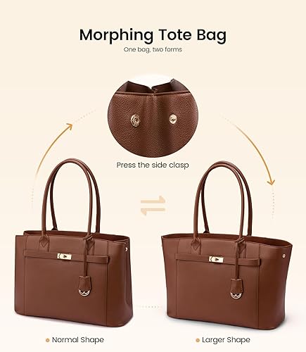 【Convertible Silhouette】Twin side clasps transform the work bag in seconds: snapped shut, you get a structured square tote fits perfectly in any work office and commute scenario; unsnap for a relaxed trapezoid that expands for farmers-market hauls or overnight stays—two silhouettes, one bag, zero compromises.