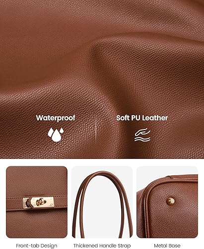 LOVEVOOK Laptop Tote Bag for Women, Large Computer Work Bag for Teacher Nurse Business PU Leather Brifecase Handbag(Brown,15.6 in)