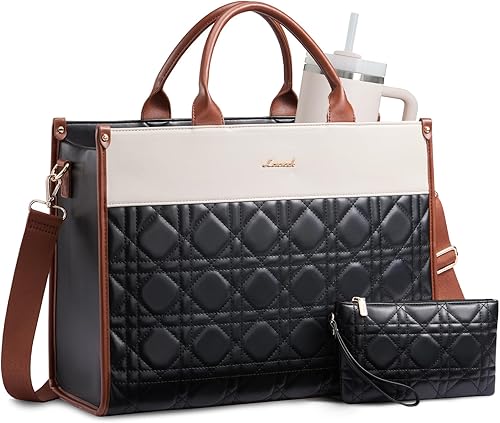【Elegant & Stylish Design】: Featuring a chic quilted pattern, this laptop tote bag combines simplicity with fashion, ensuring a stable upright position that prevents tipping. It's the perfect accessory for the modern professional woman.