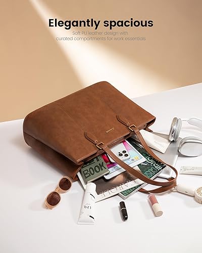 【Lightweight & Comfortable Design】 This 2.2 lb laptop tote bag for women features super soft PU leather that won't dig into your shoulder. The smooth metal zipper and classic design make it perfect for both work and everyday use. No weird smells - ready to use right away!