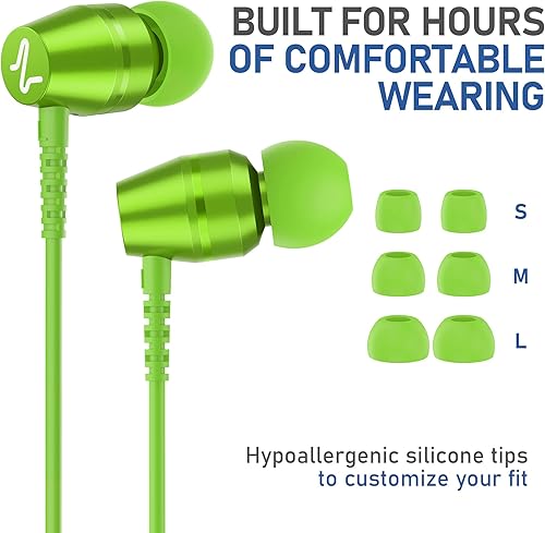 LUDOS OMNITONE Wired Earbuds in-Ear Headphones, 5 Year Warranty, Earphones with Microphone, 3.5 mm Jack Corded Ear Buds, Videoconference for iPhone, Samsung, Laptop, Kids, School Students - Brown(3.5 mm,Green)