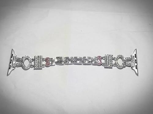 Luxury Crystal Watch Band Strap, Silver with Pink Stones, Metal Link Bracelet for Apple Watch, Rhinestone Decorative