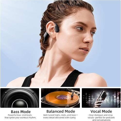 【Headphones Bone Conduction with Cartilage Conduction & EQ Presets】 bone conduction earbuds with tragus-based design for natural sound, safety, comfort; bone conduction headphones Bluetooth with 3 EQ modes & dual-mic ENC for clear calls