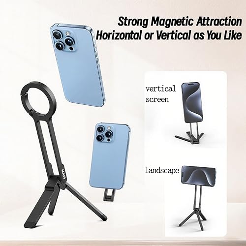Multifunctional 4-in-1 Design: More than just a tripod, this innovative tool is a complete phone accessory kit. It functions as a stable phone tripod stand, a convenient desktop phone stand, a secure magnetic phone grip, and a compact selfie stick