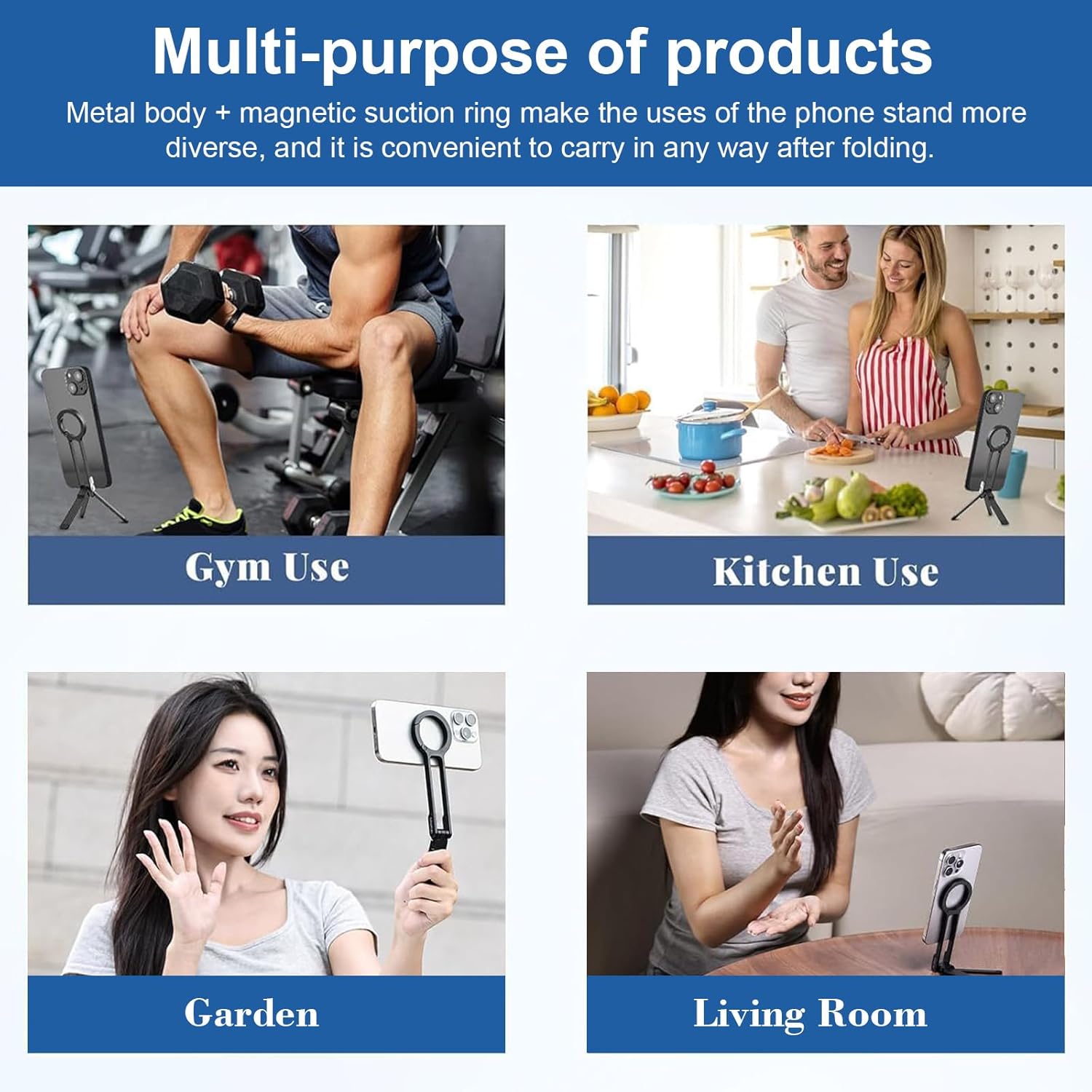 【180°Flexible Positioning】The flexible hinge and magnetic mounting system allow you to smoothly tilt and rotate your phone to achieve the perfect angle—whether you're on a video call, watching a movie, or taking photos.