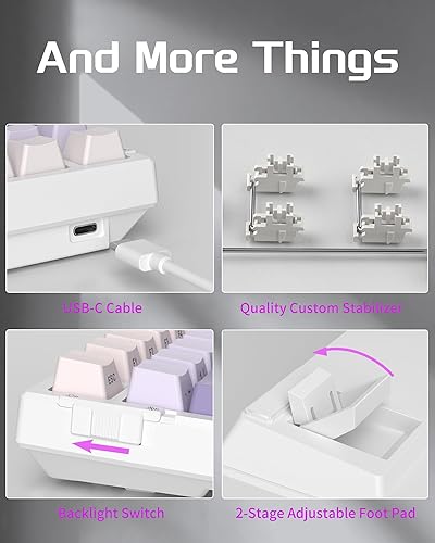 HOT-SWAPPABLE SOCKET & PRE-LUBED CUSTOM SWITCHES: This 96% mechanical keyboard is compatible with 3-pin or 5-pin switches, allowing you to personalize your keyboard. The switches are individually removable and can be replaced in seconds. The SKY98 keyboard utilizes MageGee's finely tuned switches, which are pre-lubricated at the factory and built to last up to 70 million keystrokes for responsive and creamy typing.