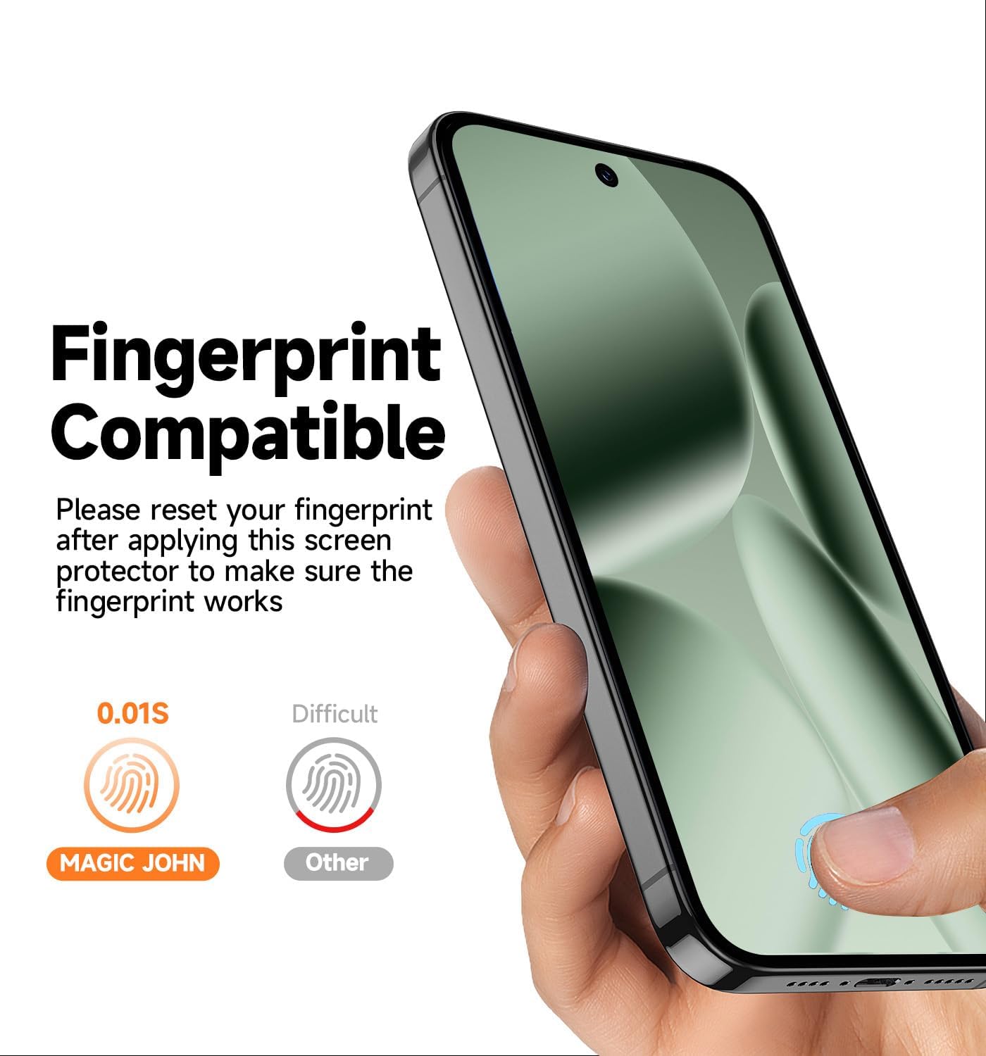 [Anti-Fingerprint] Magic John tempered glass screen protector for Google Pixel Google Pixel 10 Pro XL is finished with oleophobic coating to against oil residue from fingerprints from long-term use