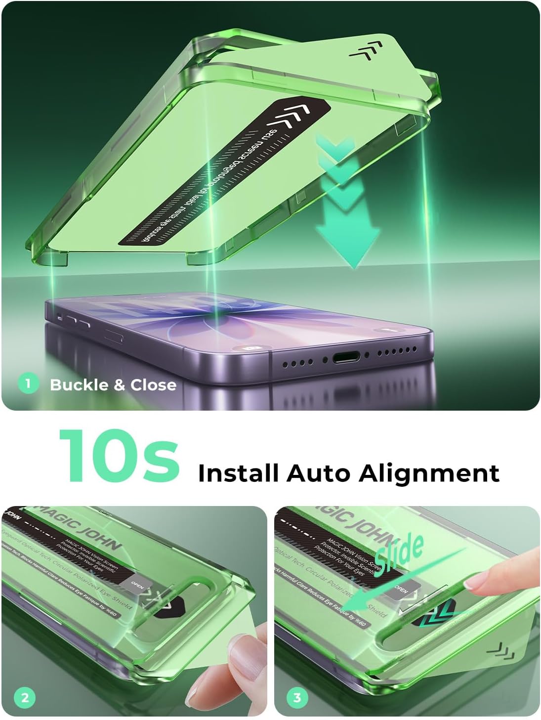 Comment on "MAGIC JOHN 2 PACK for iPhone 17(6.3") Eye Protection Screen Protector, HD Clear, Auto Dust-Elimination, 9H Tempered Glass & Scratch Resistance, Full Edge Coverage"