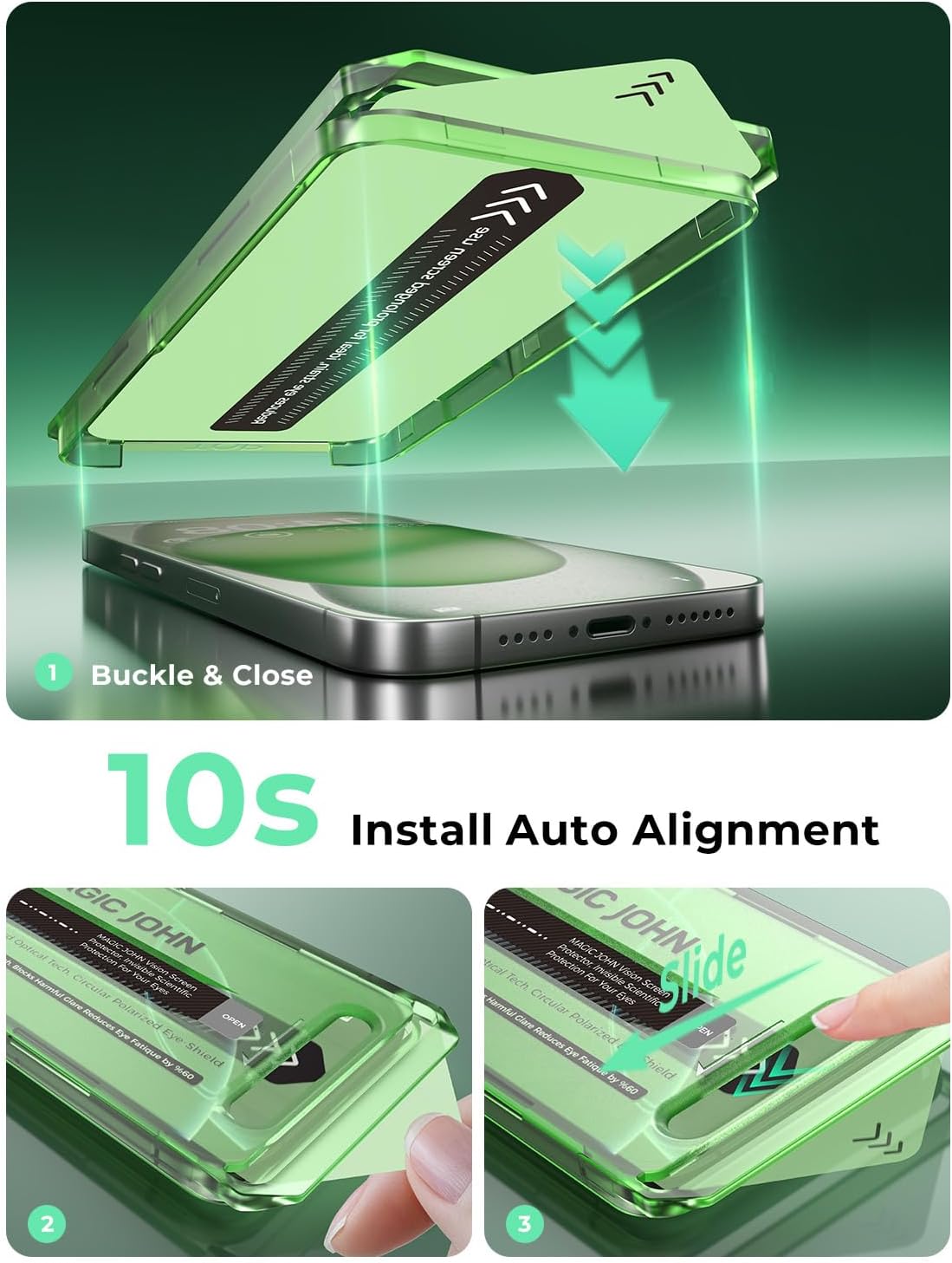 Comment on "MAGIC JOHN 2 PACK for iPhone 17 Pro Max [6.9"] Eye Protection Screen Protector, HD Clear, Auto Dust-Elimination, 9H Tempered Glass & Scratch Resistance, Full Edge Coverage(iPhone 16/iPhone 15)"