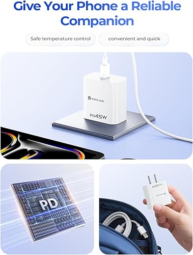 [PD 45W Fast Charger] Features triple protection against over-voltage, over-current, and overheating for safer charging. 45W high power input, 3 times faster than ordinary charging. PD3.0 fast charging, compatible with iPhone, Samsung and other mainstream models. Portable design, more convenient for travel and business