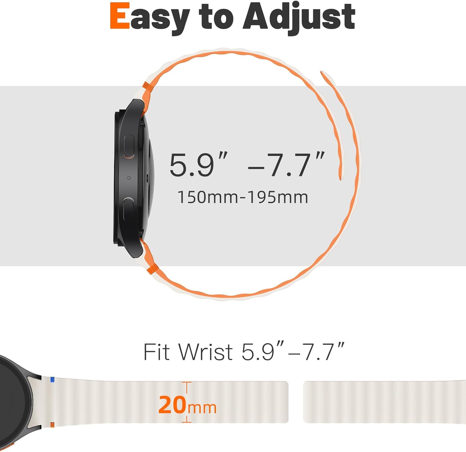 Comment on "Magnetic Band Compatible with Samsung Galaxy Watch 7 6 5 4 FE 40mm 44mm, for Galaxy Watch 6 4 Classic 43mm 47mm 42mm 46mm/Watch 5 Pro 45mm Band, 20mm Sport Silicone Band for Men & Women, Wave Design(Starlight/Orange)"