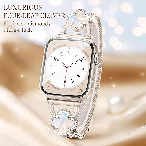 Magnetic Clover Band Fits Apple Watch Bands for Women 46mm 45mm 44mm 42mm 49mm, Milanese Stainless Steel iWatch bands, Mesh Band for Apple Watch Band Series 11 10 9 8 7 6 5 4 3 SE Ultra-Gold(Dressy-Starlight,42mm(Series11/10)/38mm/40mm/41mm)