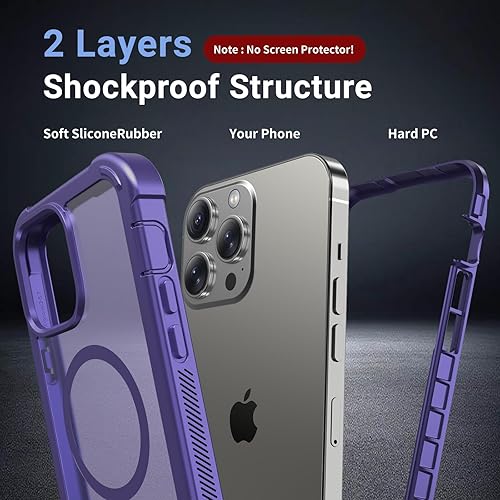 Magnetic for iPhone 17 Case, [Compatible with MagSafe][Military Grade Drop Protection][Heavy Duty Protection][Non-Slip][Shockproof] 2-Layer Durable Bumper Phone Case 6.3''-Deep Blue(Dark Purple,iPhone 13 Pro Max)