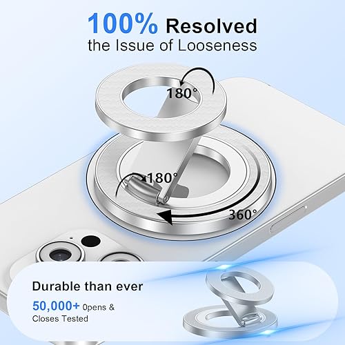 【Strong Magnetic Power】Adjustable dual sided magnetic phone grip uses the strongest N52 magnets, making it more powerful than N50 or N48 magnets. The magnetic phone ring grip kickstand is made of high-quality zinc alloy metal material and with strong magnetic suction force. It can withstand a weight of up to 2200 grams/4.8 pounds, equivalent to the weight of 10 iPhone 16 Pro Max devices.