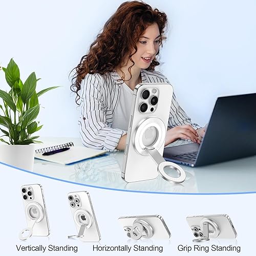Magnetic Phone Grip Stand MagSafe Ring Holder Gym Finger Ring Magnet Grip Kickstand Dual-Sided Magnetic Car Mount for iPhone 17/16e/16 Pro Max/16/15 Pro Max Samsung Galaxy Z Fold7/Flip7/S25 Ultra/S24(white)