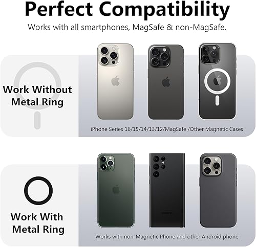 Wide Compatibility: This gym phone holder is suitable for all smartphones, it is compatible with iPhone 16/15/14/13/12 series and other Magsafe phones, other non-Magsafe phones and cases can also be used with the metal ring we provide.