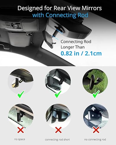 Crab-Claw Design Clamp: The innovative crab-claw design of the clamp securely grips the rearview mirror rod, the installation can be completed in 10 seconds, and can be firmly clamped on the back of the car rearview mirror like crab pliers. There is a gap at the bottom of the claw, and it has a TPU rubber pad, so it will not squeeze the wire harness that affects the rearview mirror.