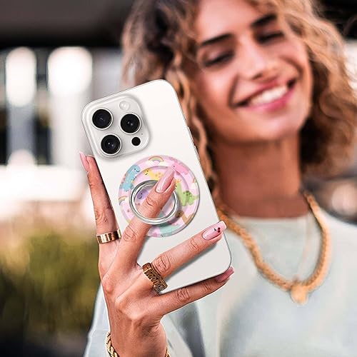 Strong Magnetic: With strong magnetic force, this cute phone grip stand can be firmly attached to the phone or phone case with magnetic metal ring. No need to worry about your phone slipping off easily in daily use