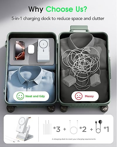 【Upgraded 5 in 1 Apple Wireless Charger】The Magsafe charging station is designed to be compatible with Mag chargers. The magnetic suction is suitable for iPhone 17/17 Air/17 Pro/17 Pro Max/16/16 Pro/16 Pro Max/16 Plus/15/15 Pro/15 Pro Max/15 Plus/14/14 Pro/14 Pro Max/14 Plus/13/13 Pro/13 Pro Max/12/12 Pro/12 Pro Max. For Apple Watch Series 11/10/9/8/7/6/5/4/3/2/SE 3/SE 2/SE/Ultra 3/Ultra 2/Ultra.For AirPods Pro 3/2/Pro/4/3/2(Wireless Charging Case).