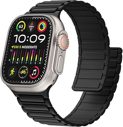 【Powerful Magnetic Watch band】:Silicone magnetic watch band adopting powerful magnet with magnetic closure design, which ensures a secure and stable fit on your wrist without worrying about slipping. Provides a safe and reliable wearing experience, equipped with upgraded N54 magnets (30%-55% stronger). ensuring greater stability during intense activities. The secure magnetic adsorption and detachable safety loop provide double protection, so whether you're running, working out, or exploring outdoors, your watch stays firmly in place without compromising comfort.