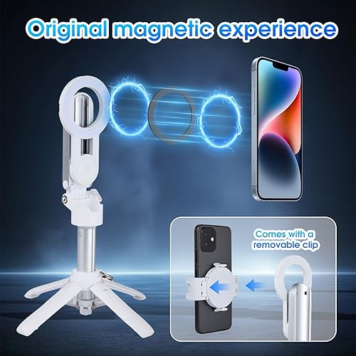 Magnetic Tripod for Phone,2 in 1 for Magsafe Stand& Clip Portable Pocket Size Selfie Stick for Android/iPhone,Phone Holder with Wireless Rechargeable Remote Control for Photography, Live Streaming(Light)
