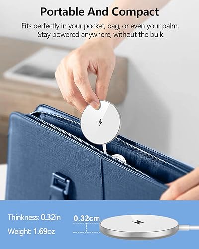 Compact and Convenient: Our magnetic charging pad with smaller and thinner minimalist design, small volume thickness of only 0.32in,weight 48g, easy to carry whether it is home, office or business trip, travel, coffee shop, anywhere, anytime to solve the charging problem.